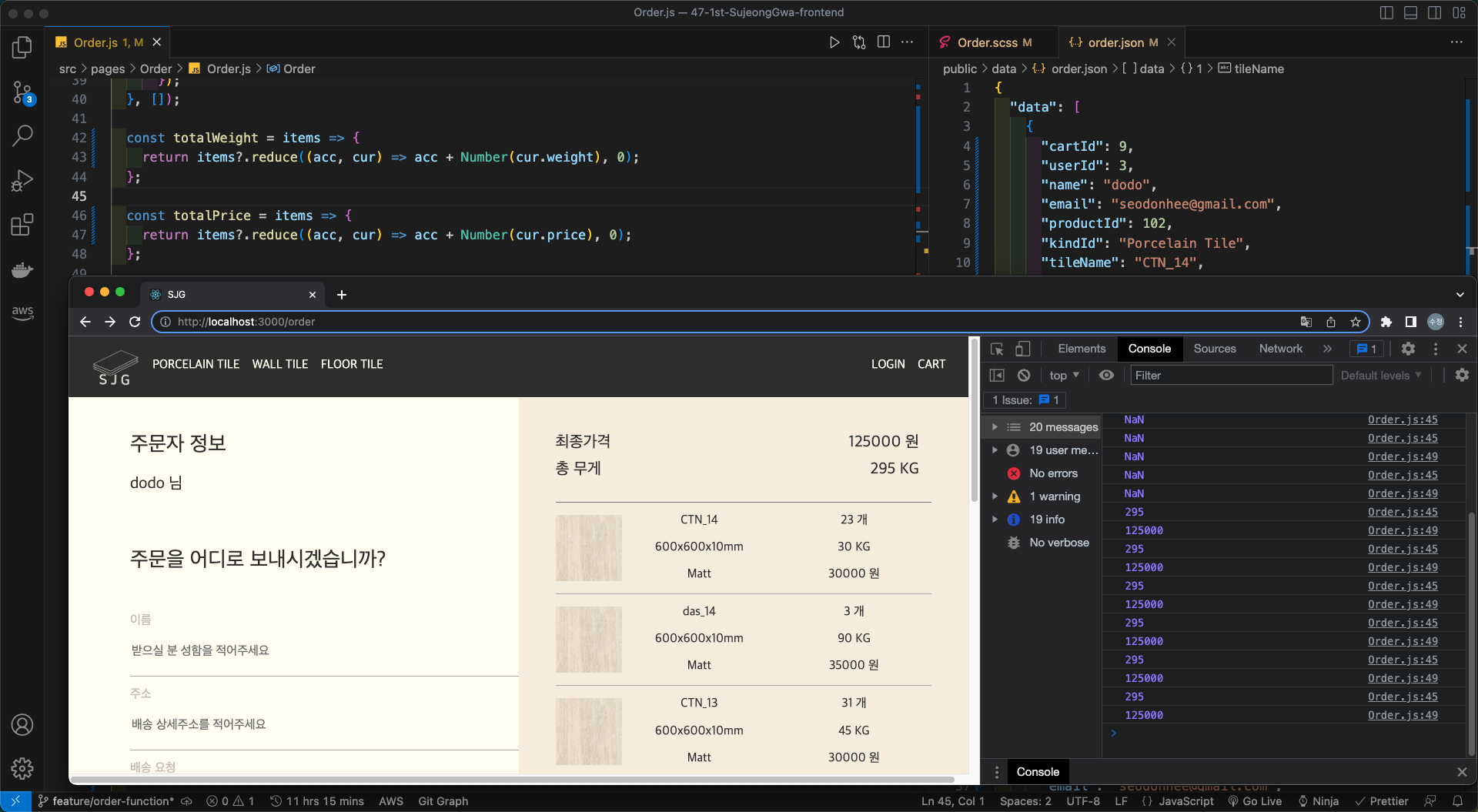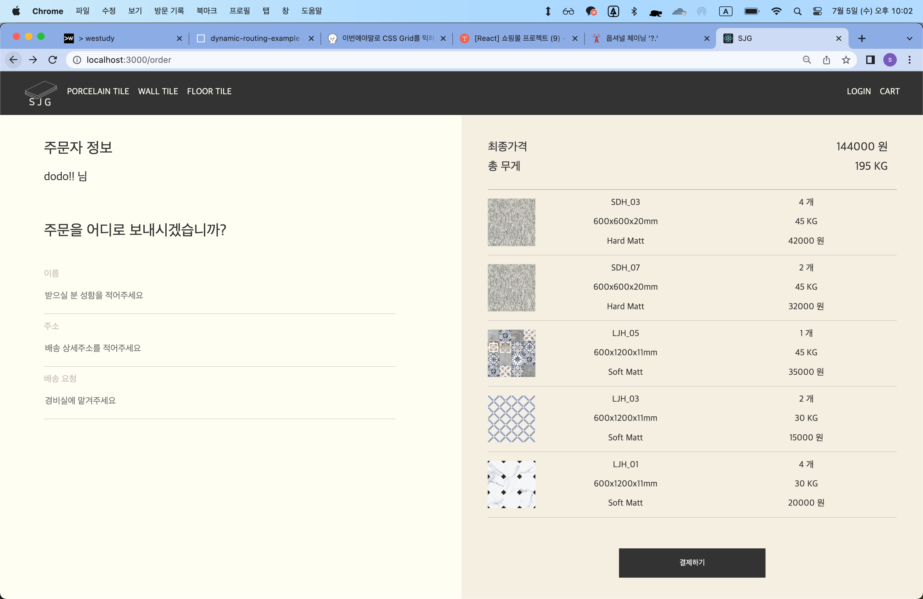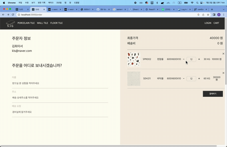 장바구니 기능이 포함된 주문페이지로 완성되었다.