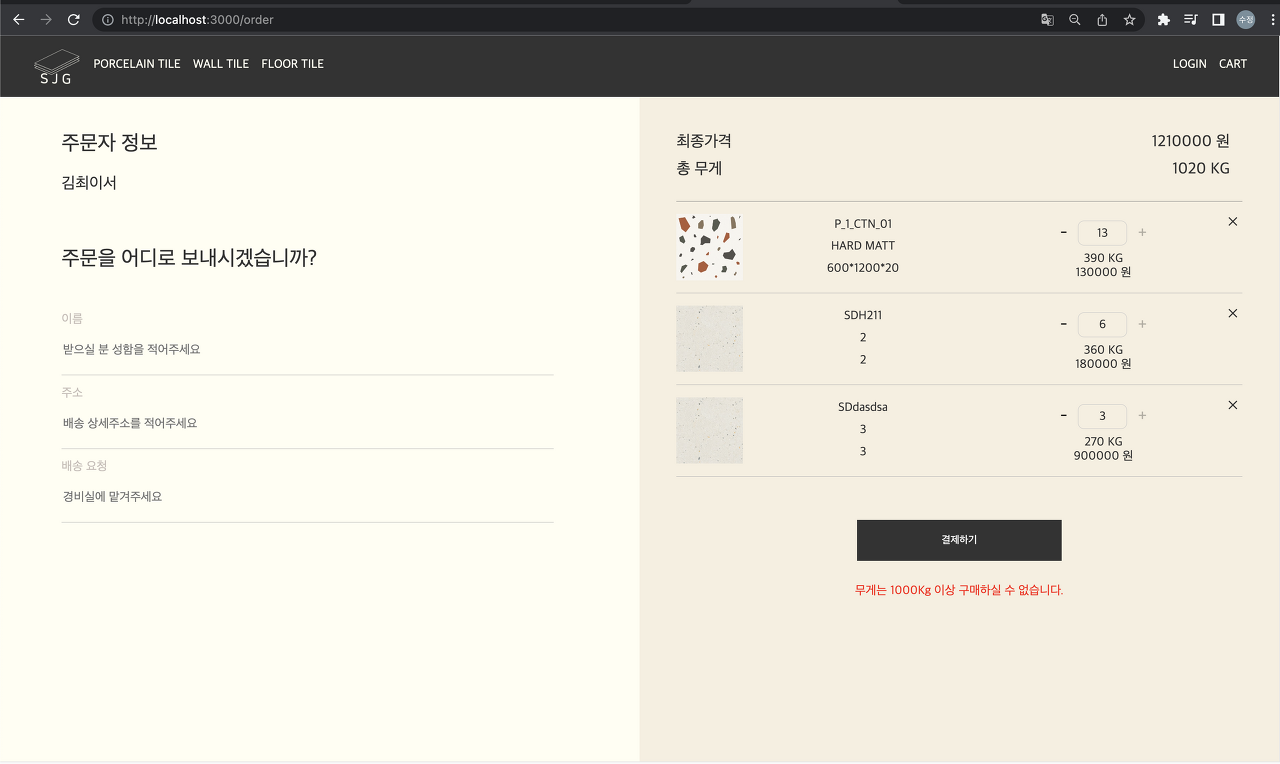 처음에 구상한 주문페이지는 아래의 이미지와 같았는데 백엔드 한분과 논의하며 바꾸다보니