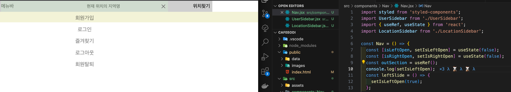 그래서 왼쪽,오른쪽으로 나누어서 선언해놓고 여전히 이전의 함수를 사용하고있었기 때문에 상태업데이트 함수 자체가 출력된것이였다.