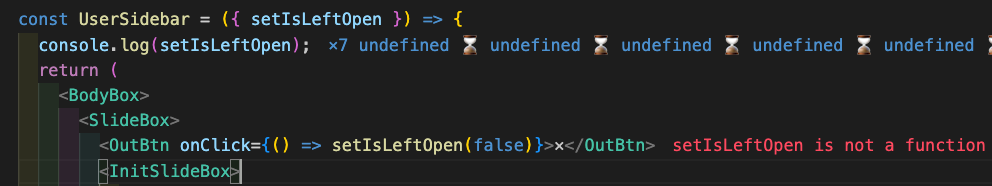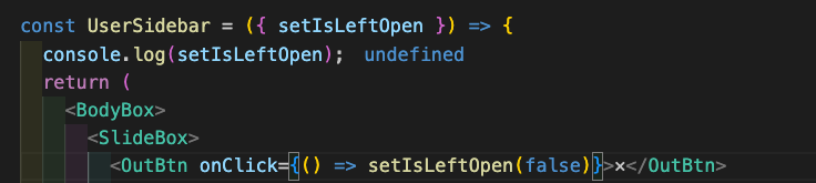 console.log()를 setIsLeftOpen가아닌 IsLeftOpen을 입력하니 true,false가 잘 뜨는것을 확인했다.