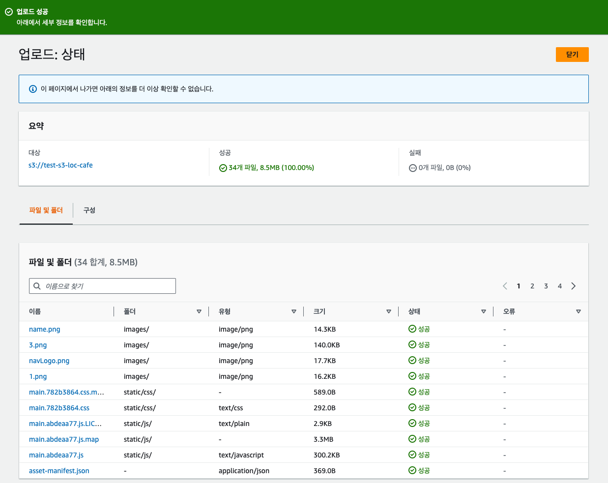 다시 스토리지 주소로 접속해보면 잘 뜨는것을 확인할 수 있다.