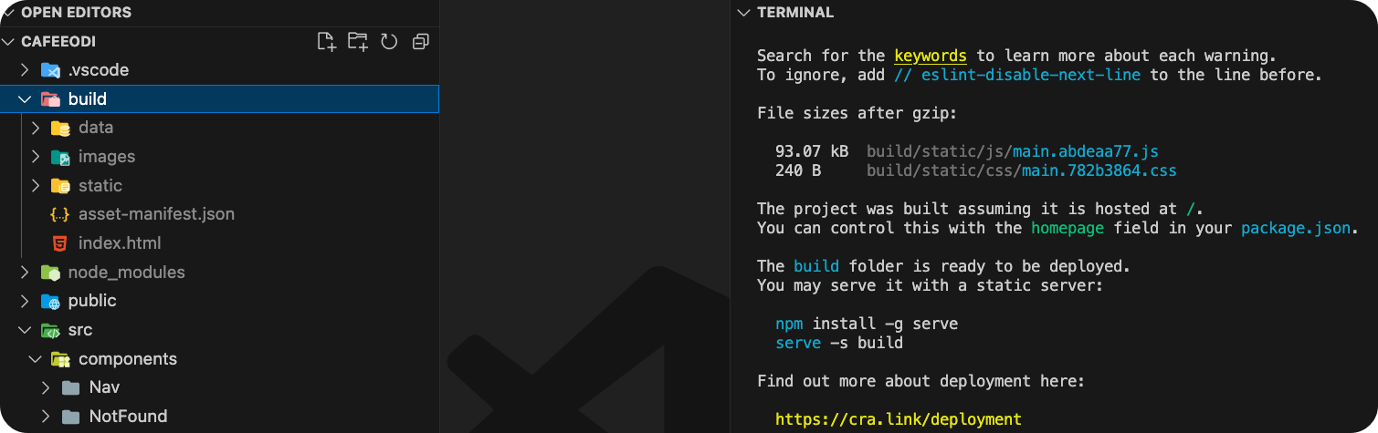 build 하면 build 폴더가 생성되고 내부에 정적 웹 컨텐츠가 생긴다.