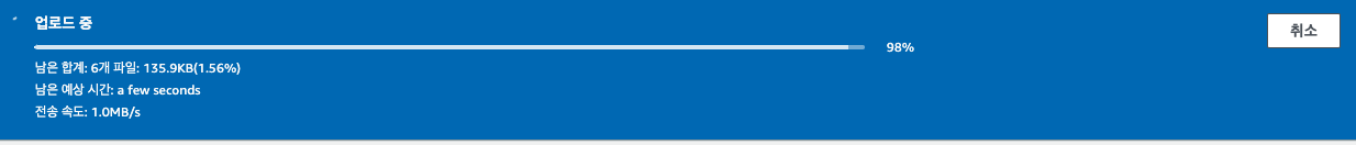 파일 추가/ 폴더 추가 버튼을 눌러 처음에 생성한 build 폴더 내의 모든 파일과 폴더를 업로드한다.