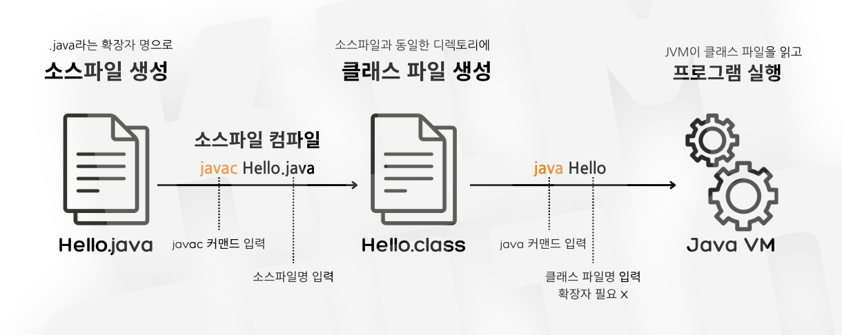 예를 들어, javac HelloWorld.java라고 입력하면, HelloWorld.class 파일이 생성된다.