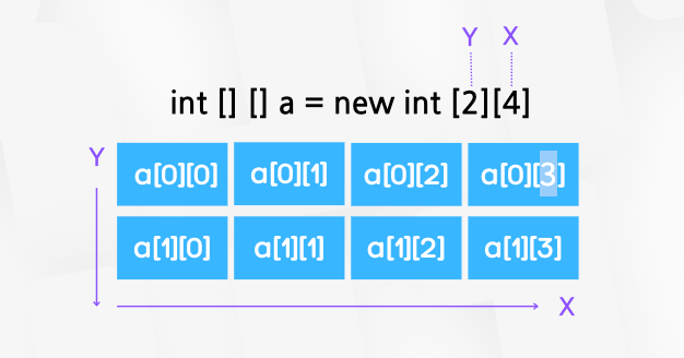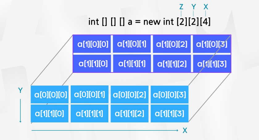 일반적인 배열은 요소의 수에따라 횡으로 늘어가는 일차원 배열이지만, 2차원, 3차원으로 확장하는 배열도 있다.