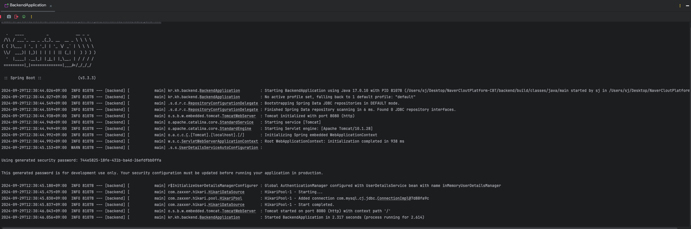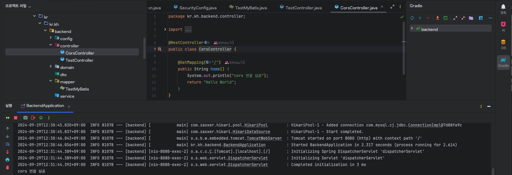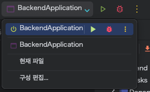 실행버튼 옆의 BackendApplication 옆의 로고가 좀 다르다.