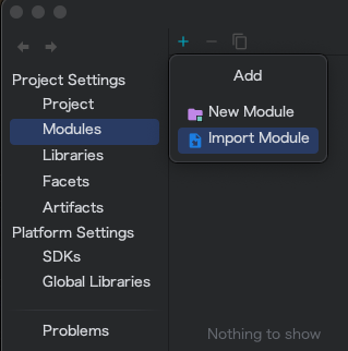 + 클릭 후 import Module 클릭