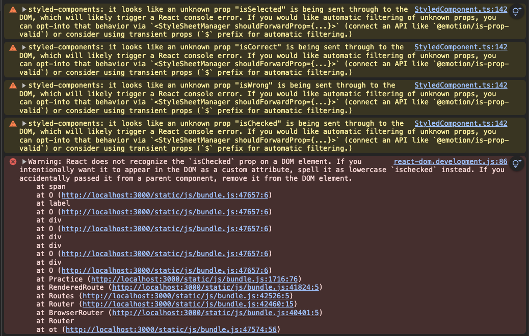 - @emotion/is-prop-valid 라이브러리를 설치하면 필터링 로직을 더 정교하게 처리 할 수 있다.