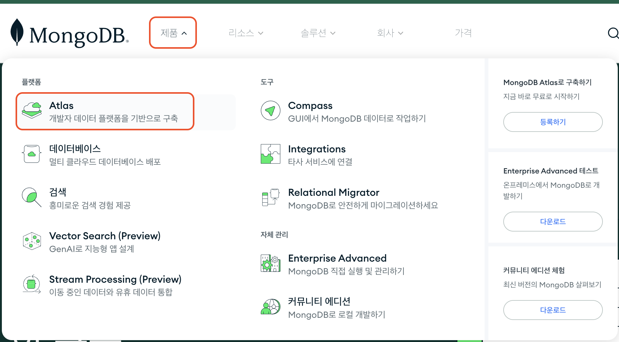 클라우드에 아틀라스로 들어간다.