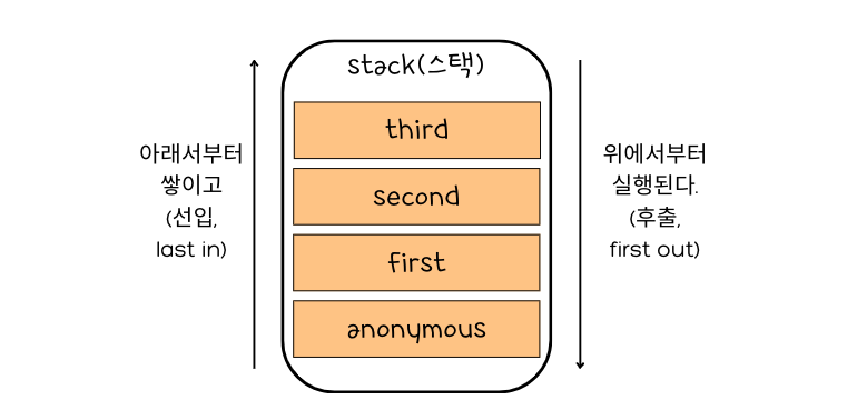 console.log(1) → first 나감 →anonymous 순으로 실행되고, anonymous까지 실행이 완료되면 호출스택은 비어있게된다.