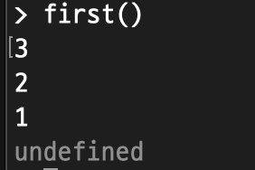 run js라는 프로그램으로 돌려보면 1,2,3이 출력되는데 왜 node는 3,2,1 순으로 출력될까? (undefined는 반환하는 값이 없어서이다.)