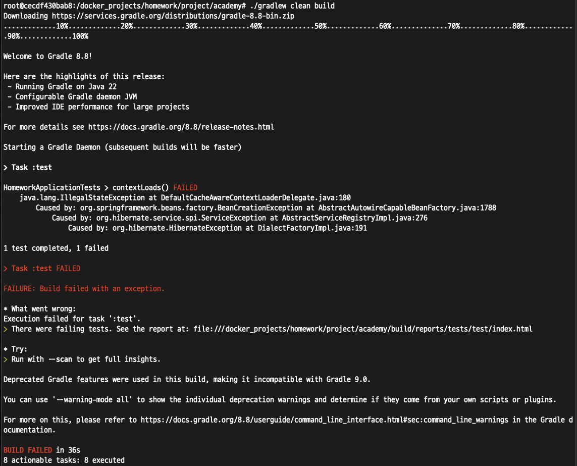 인텔리제이에서 문제의 코드를 해결하고 pull 한뒤 다시 클린빌드를 함