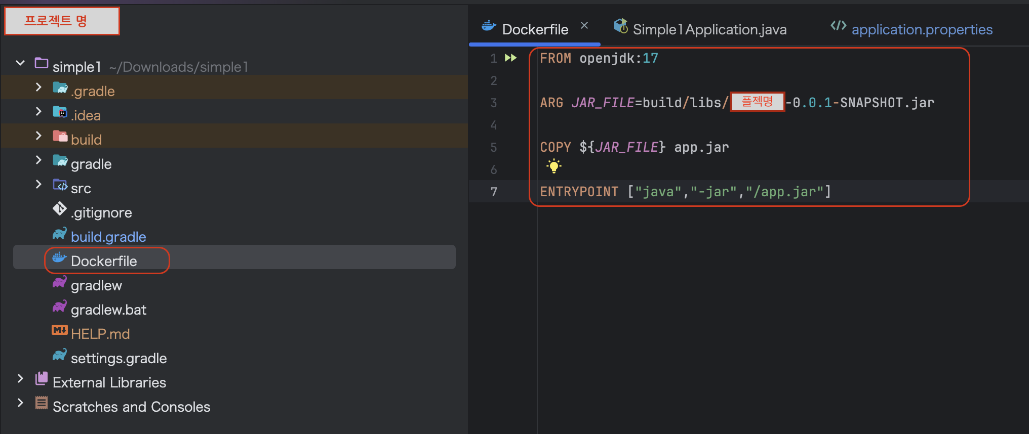 docker build -t IDE의 프로젝트명 .