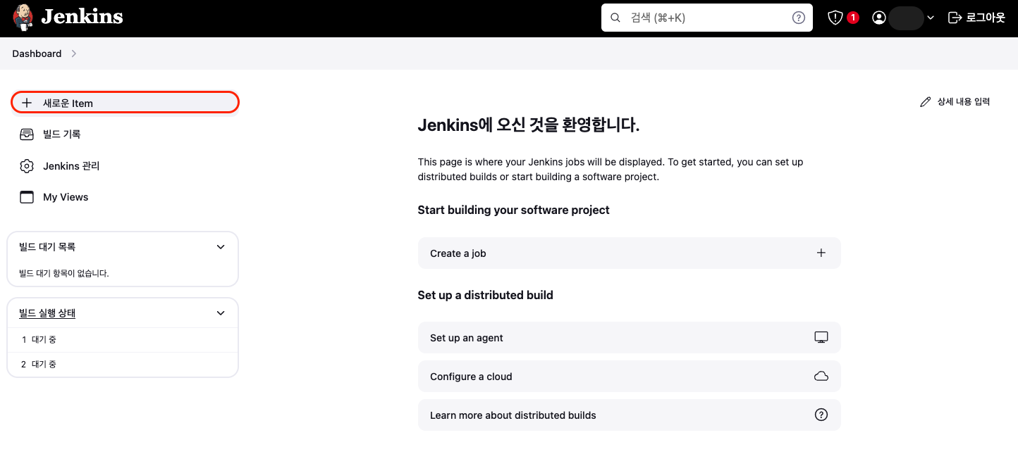 공인IP:8080 으로 접속한경우 새로운 Item을 클릭해줍니다.